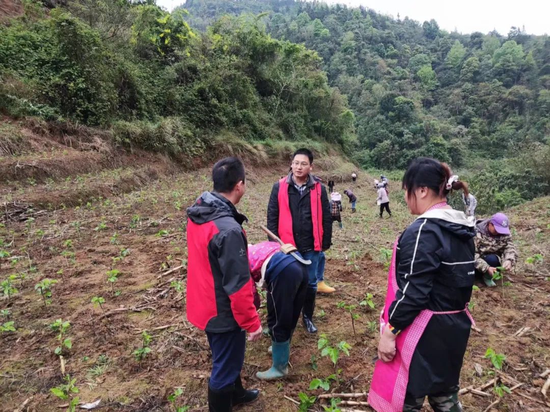 張正淳(中)在桑園指導農戶進行科學肥培管理和早春病蟲害防治