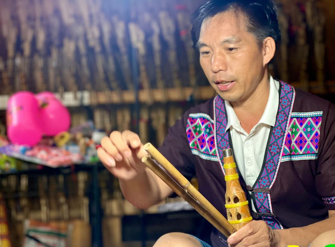 非遺手藝人馬貴光展示制作蘆笙的過程。秦磊攝