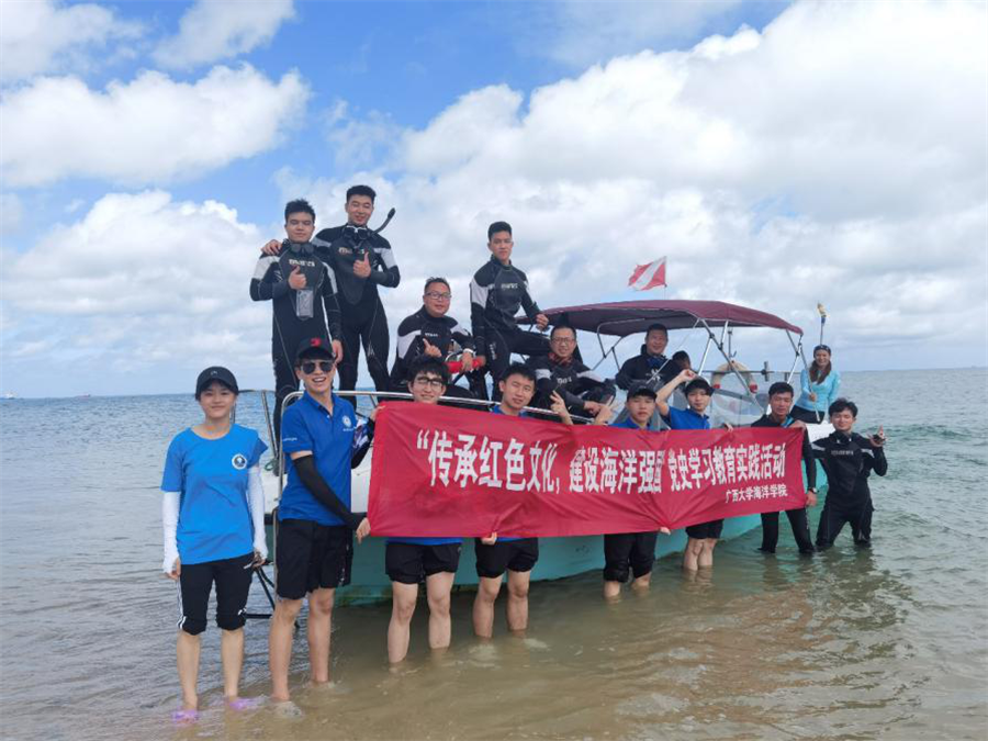 日前,廣西大學(xué)海洋學(xué)院實(shí)踐團(tuán)到北海潿洲島開(kāi)展學(xué)習(xí)、普查、凈灘等一系列暑期社會(huì)實(shí)踐活動(dòng)。