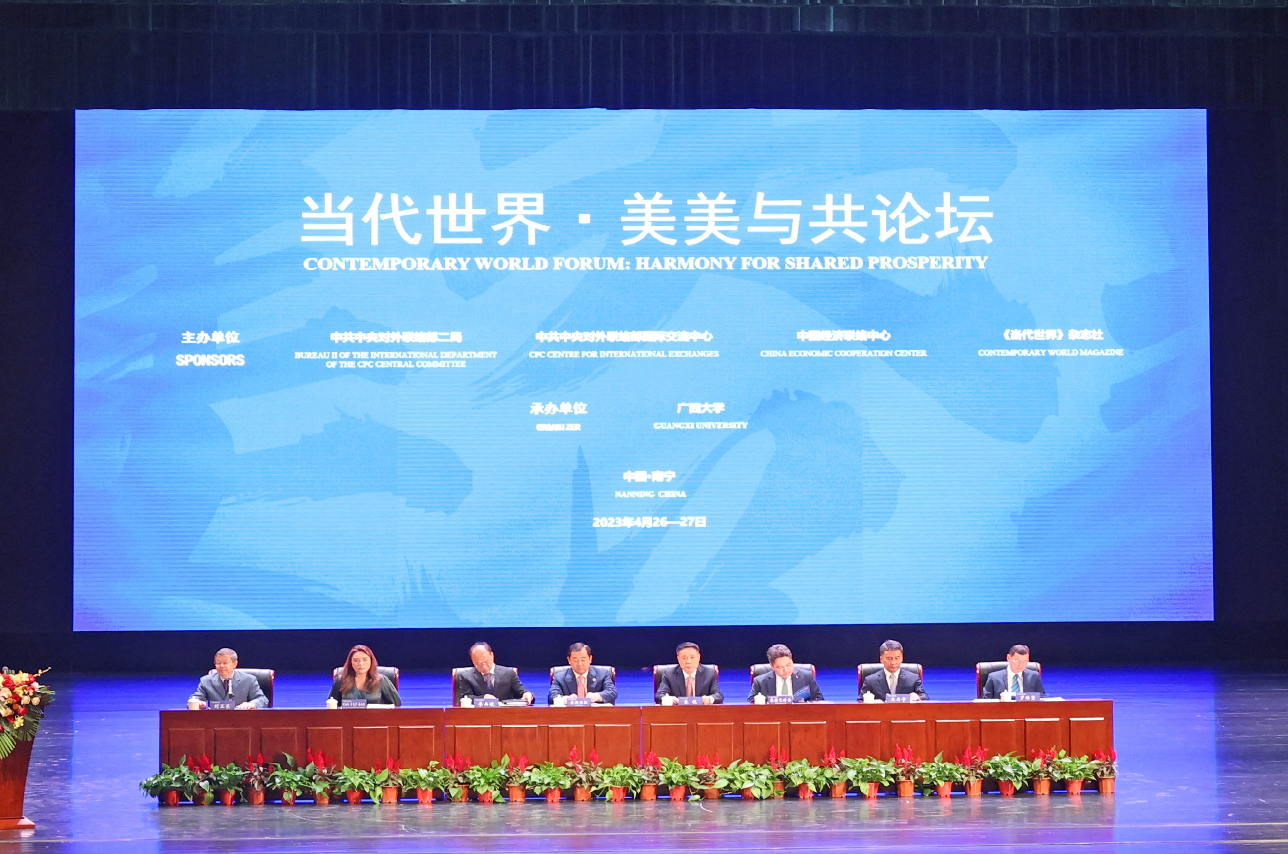 4月26日至27日,中共中央對外聯絡部二局、中聯部國際交流中心、中國經濟聯絡中心、《當代世界》雜志社在廣西南寧聯合舉辦“當代世界·美美與共論壇”,廣西大學承辦。中共中央對外聯絡部部長助理朱銳出席并作主旨講話,廣西壯族自治區副主席廖品琥致辭,自治區政協副主席、廣西大學黨委書記王乃學,柬埔寨人民黨中央外委會第一副主席索斯亞拉,蒙古人民黨領導委員會委員、第一書記恩赫巴特爾,菲律賓國會眾議員(助理多數派領袖)、基督教穆斯林民主力量黨副秘書長阿拉娜·薩曼莎·桑托斯,中國馬來西亞商會會長羅維堅等中外方嘉賓作主題發言。自治區政協原副主席、中國—東盟區域發展省部共建協同創新中心主任劉正東主持開幕。中外方嘉賓圍繞深刻理解習近平總書記提出全球文明倡議的時代價值和世界意義,深化中國與周邊國家各領域務實合作,開啟構建周邊命運共同體的新篇章等展開討論。