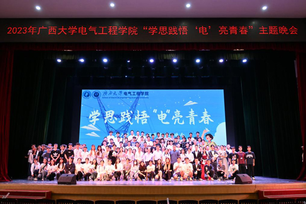 近日,2023年廣西大學電氣工程學院“學思踐悟,電亮青春”主題晚會在廣西大學大禮堂舉行。晚會總結回顧了去年該院涌現出來的學生榜樣人物、優秀事跡及豐碩成果,為學生們上好青春思政課。