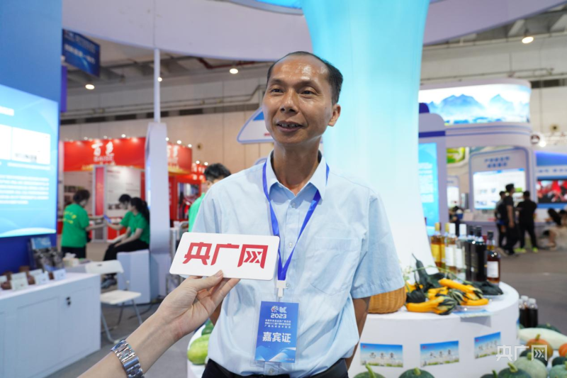 在高校院所先進技術展示區,唐小付(左一)向參展嘉賓介紹他培育的蔬菜品種(央廣網記者 羅蘭 攝)