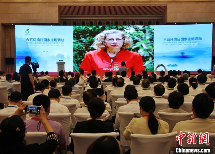 聯(lián)合國環(huán)境規(guī)劃署執(zhí)行主任英格·安德森通過視頻致辭。 趙曉 攝
