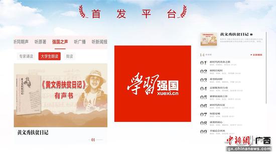 6月17日,有聲書《黃文秀扶貧日記》在“學(xué)習(xí)強(qiáng)國(guó)”正式上線,該音頻作品還在廣西廣播電視臺(tái)移動(dòng)客戶端廣西視聽以及各廣播頻率同步上線播出。上線不到兩天,播放量已達(dá)100萬+。