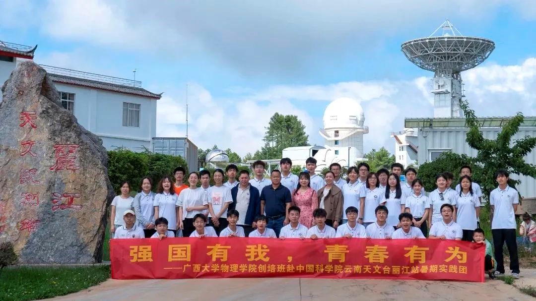為了加強天文學科建設、培養具有科技前沿視野的一流學生、貫徹落實“科教融合”的人才培養理念,物理科學與工程技術學院分別組織前往云南麗江國家天文臺和中國科學院江門中微子實驗室進行社會實踐活動,并邀請到天文臺知名科研專家為學生科普天文知識。在麗江天文觀測站,實踐團參觀了1.6米多通道測光巡天望遠鏡、2.4米光學望遠鏡,以及望遠鏡控制室,在相關專家的講解下,學生近距離觀看了望遠鏡的工作方式;在麗江天文觀測站傾聽了主題為“地外生命漫談與類星體、活動星系核”的科普學術報告;在中國科學院江門中微子實驗室,學生近距離參觀并了解國家大科學裝置的運行原理和建設進展,聆聽了中國科學院江門中微子實驗與大亞灣反應堆中微子實驗的主題報告。在本次社會實踐活動中,學生們切身了解了天文領域的知識,深刻感受到了天文行業的魅力,領悟到做好科研的必要條件是有吃苦耐勞的決心和堅韌不拔的毅力,對個人未來發展方向更加確定。他們紛紛表示將更有信心、更富激情地投入到天文領域中去。“我們的征途是星辰大海,但我們更要腳踏實地”,這是麗江天文臺實踐結束后同學們的共同感悟。