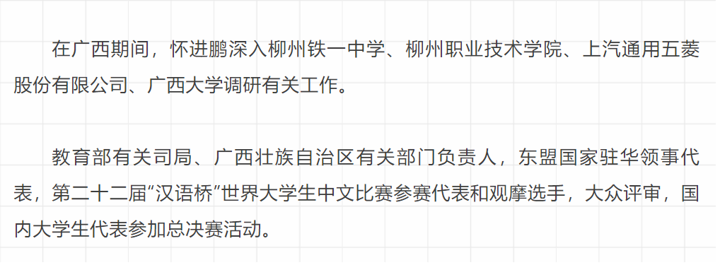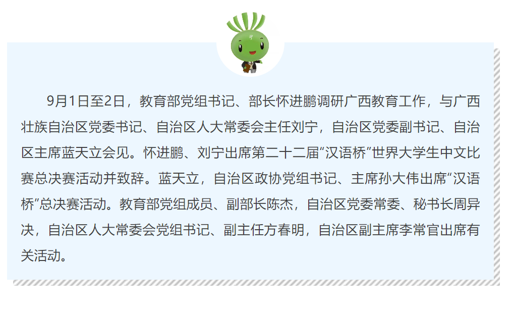 懷進鵬調(diào)研廣西教育工作并出席第二十二屆“漢語橋”世界大學(xué)生中文比賽總決賽活動