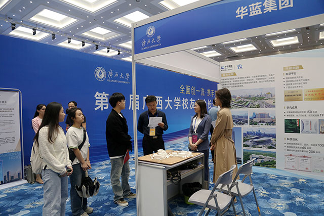 同期還舉辦校友企業成果展、現場招聘等,期間有超過和50余家各行業優秀校友企業參加。成果展整合學校和校友資源,為校友企業的事業發展提供更好支持和服務,同時也幫助應屆校友畢業生更好地找到工作,并且通過校友企業家們“傳幫帶” 的精神把更多的廣西大學學子培養成社會需要的人才。