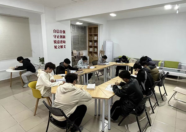 學(xué)生們正在宿舍樓棟里開設(shè)的24小時(shí)自習(xí)室學(xué)習(xí)  鄭東攝