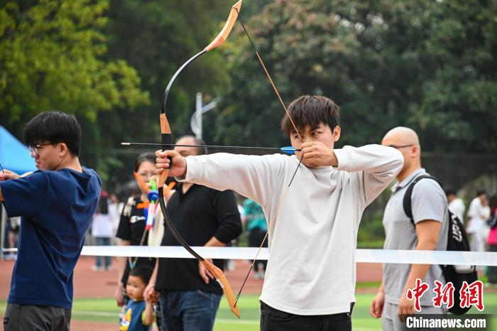 圖為大學生在體驗射箭項目。共青團廣西大學委員會供圖