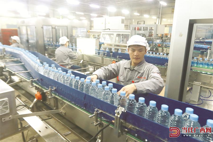 巴馬活泉礦泉水生產基地的員工正在對產品進行質檢。 劉崢/攝
