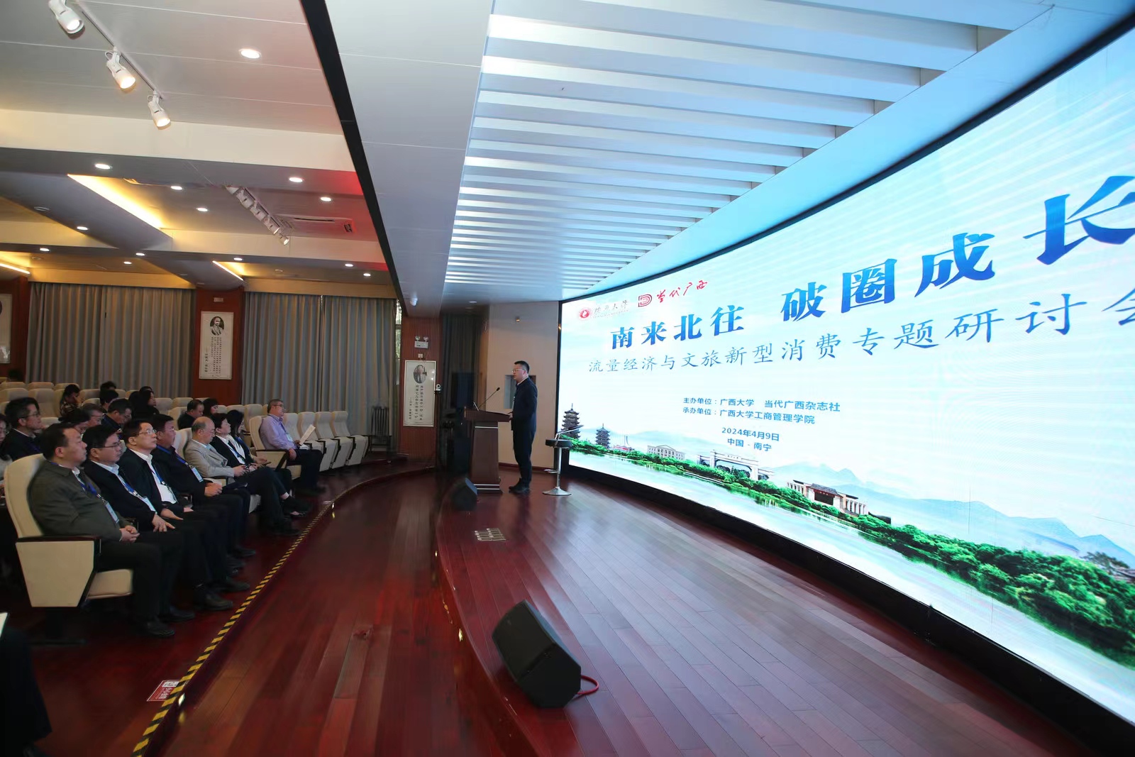 4月9日,由廣西大學、當代廣西雜志社主辦,廣西大學工商管理學院承辦的“南來北往 破圈成長”——流量經濟與文旅新型消費專題研討會在廣西大學舉行。來自中山大學、哈爾濱工業大學、黑龍江大學、湖北大學、廣西大學、陜西師范大學等10余所高校以及廣西壯族自治區文化和旅游廳、廣西壯族自治區社會科學界聯合會、廣西旅游發展集團、南寧市文化廣電和旅游局等單位的專家學者及廣西大學師生近100人參加了會議。