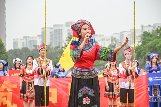 “嗨嘹嘹啰,嗨幸福嘹嘹啰……”唱起記憶中的壯族山歌,19歲廣西女孩莫夏琳開心地笑了。不久前,在廣西大學(xué)第十屆“三月三”民族文化體驗(yàn)展示活動(dòng)現(xiàn)場(chǎng),不少同學(xué)身著民族服飾,手拉手載歌載舞,臉上洋溢著笑容。