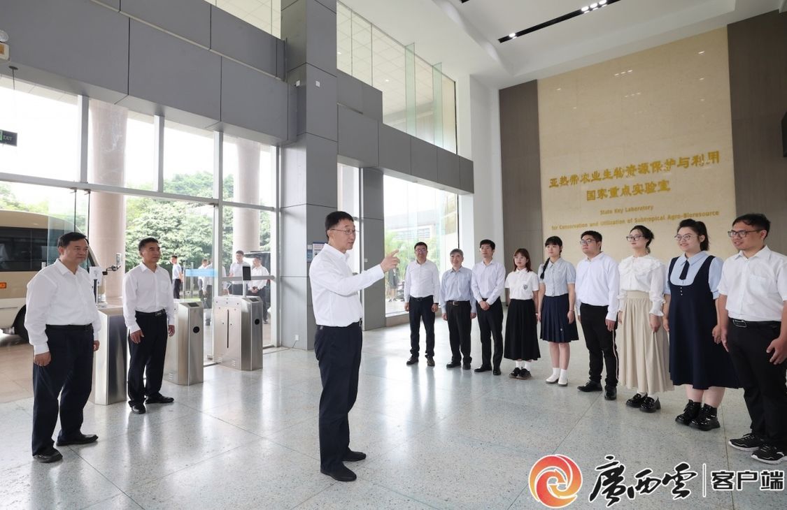 廣西大學甘蔗生物育種青年攻關團隊以保障國家食糖安全為使命,構建“本+碩+博+青年教師+資深教授”的科技攻關人才梯隊,先后培育甘蔗品種18個,獲批甘蔗相關專利20余項,在甘蔗基因組學研究領域處于國際領先水平。在廣西大學亞熱帶農業生物資源保護與利用國家重點實驗室,劉寧參觀甘蔗品種展示,聽取甘蔗生物育種研究有關情況匯報,看望慰問甘蔗生物育種青年攻關團隊師生代表。“習近平總書記去年視察來賓‘雙高’糖料蔗基地時強調,要積極培育和推廣良種、提高機械化作業水平,建設好現代農業產業園。”劉寧表示,廣西農業資源豐富,是我國蔗糖主產區,甘蔗生物育種研究前景光明、大有可為,希望大家銳意進取、勇挑重擔、奮發有為,孜孜不倦加強科學研究,努力把這一特色優勢產業做強做大,不斷開創廣西糖業發展新局面,為保障國家糖業安全、促進蔗農增收致富作出更大貢獻。