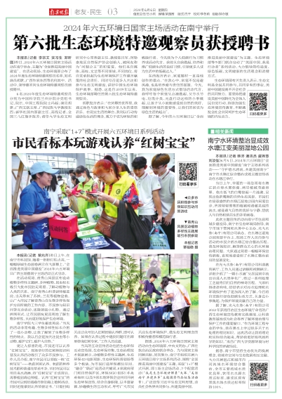 6月5日,2024年六五環境日“全面推進美麗中國建設”南寧主場系列活動——“守護碧水清流,共建美麗南寧”南寧市水塘江綜合整治成效主題宣傳活動在水塘江舉行。