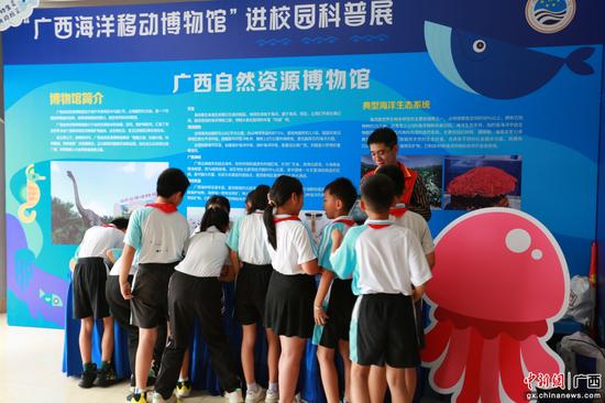 “廣西海洋移動博物館”充分發揮博物館“第二課堂”的功能,讓學生們與平時被珍藏在固定展館場所的海洋科學成品展品等直接“面對面”交流,極大縮短了小學課堂與海洋科學之間的距離。(完)