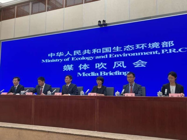 7月10日,生態環境部舉行媒體吹風會現場。中青報·中青網記者 張藝/攝