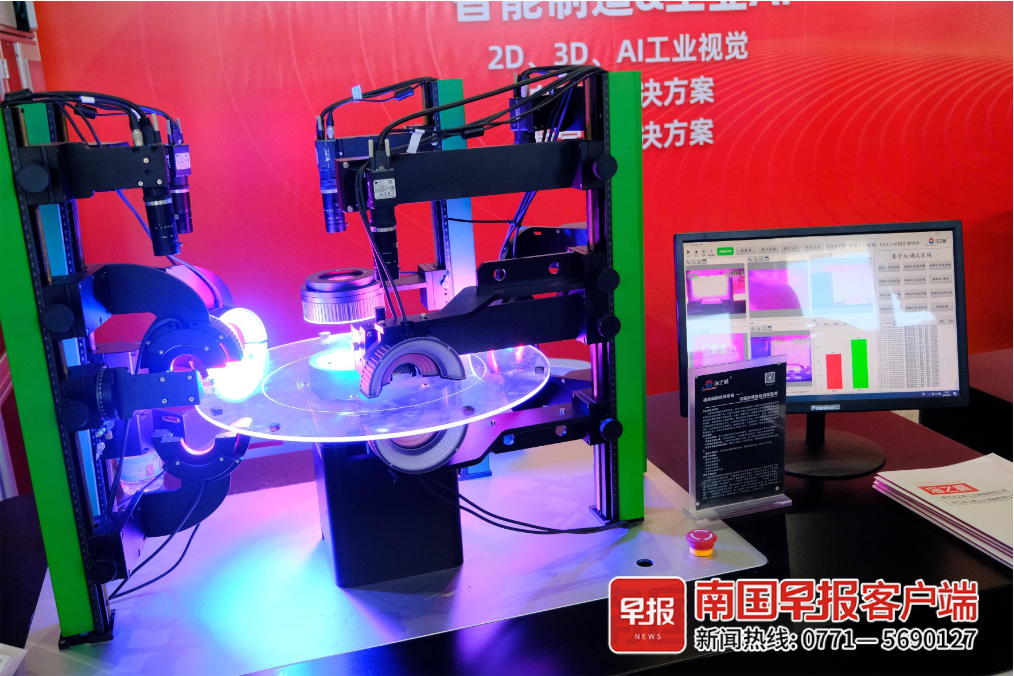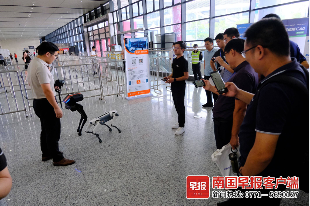 機(jī)器狗、虛擬仿真工廠、AI工業(yè)視覺……聯(lián)席大會(huì)現(xiàn)場(chǎng)設(shè)置了系列展區(qū),對(duì)當(dāng)下機(jī)械工業(yè)及輻射行業(yè)如智能制造、機(jī)器人技術(shù)等前沿科技產(chǎn)品進(jìn)行了展示,其中不少集尖端技術(shù)與產(chǎn)教融合于一身的教學(xué)設(shè)備,得到眾多高校機(jī)械相關(guān)學(xué)科院長(zhǎng)教授的青睞。青島海之晨工業(yè)裝備有限公司廣西公司負(fù)責(zé)人楊閎說,科技在時(shí)時(shí)創(chuàng)新,學(xué)校教學(xué)的專業(yè)知識(shí)和行業(yè)實(shí)踐會(huì)“延時(shí)”,教學(xué)設(shè)備的“延時(shí)”也是其一。如何把最先進(jìn)的設(shè)備搬進(jìn)大學(xué),讓學(xué)生上手的就是市場(chǎng)上的先進(jìn)技術(shù),是產(chǎn)教融合的大命題。