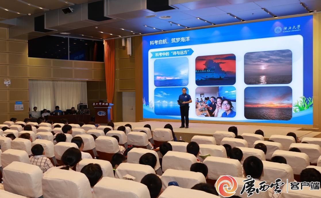 該活動圍繞“科技筑夢 向海圖強”主題,是2024年全國科普日廣西活動暨八桂科普大行動系列活動之一?;顒硬扇【€下線上相結合的形式開展,南寧市中山路小學近300名同學現場聆聽,全區約11萬名青少年同時在線觀看活動直播。