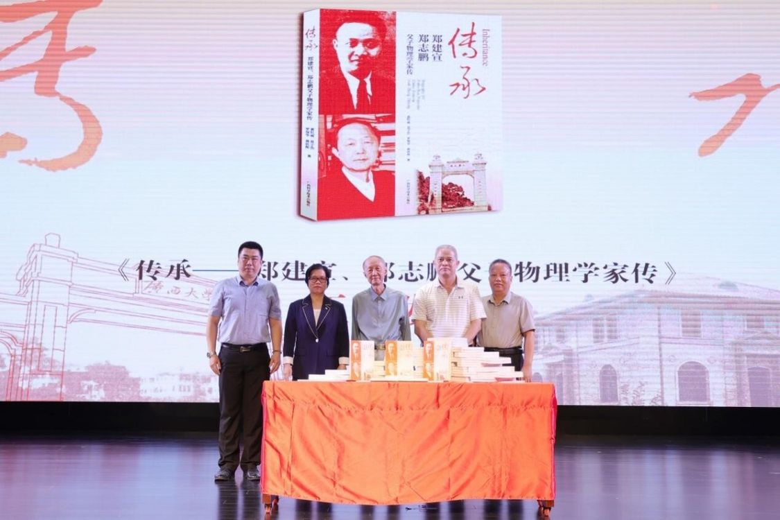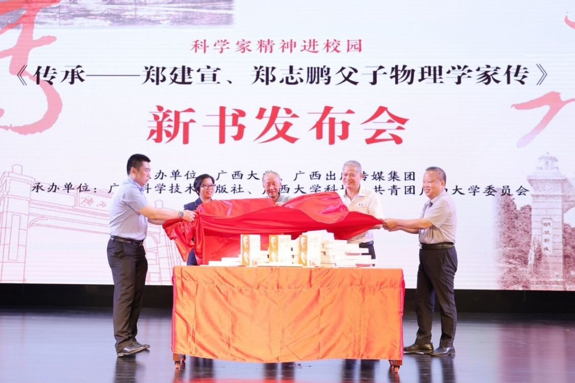 為弘揚科學(xué)家精神,推動科技創(chuàng)新與人才培養(yǎng),促進(jìn)教育高質(zhì)量發(fā)展,10月11日,由廣西大學(xué)、廣西出版?zhèn)髅郊瘓F主辦,廣西科學(xué)技術(shù)出版社、廣西大學(xué)科協(xié)、共青團廣西大學(xué)委員會承辦的“科學(xué)家精神進(jìn)校園”《傳承——鄭建宣、鄭志鵬父子物理學(xué)家傳》新書發(fā)布會在廣西大學(xué)舉辦。