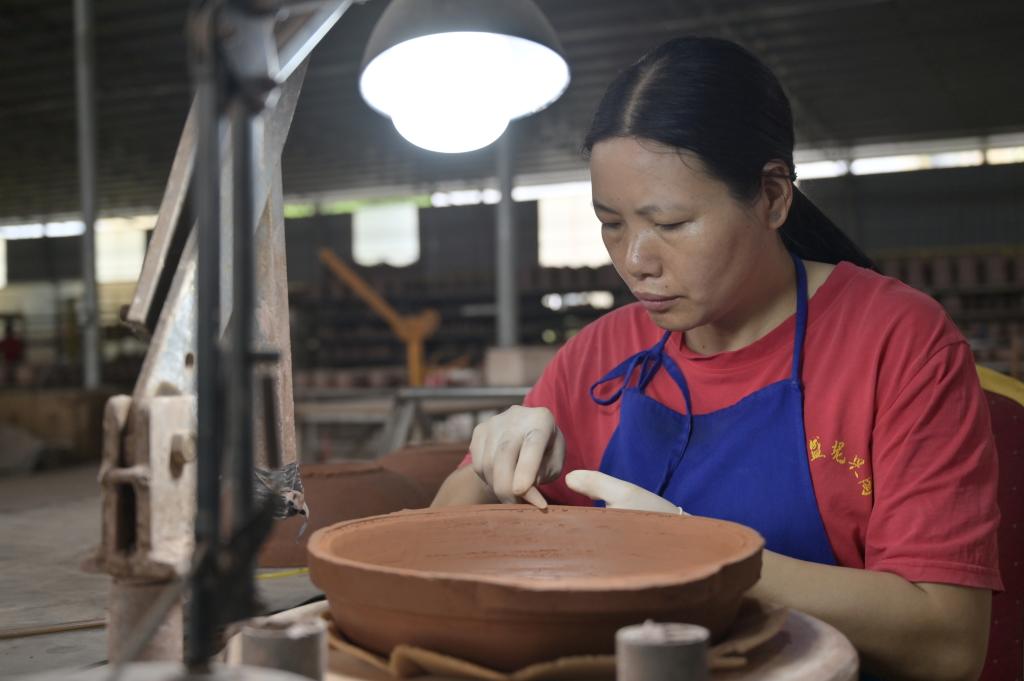 “我們正在籌建坭興陶自動化生產項目,新建3條生產線,從坯品到燒制一體化制作完成,預計每條生產線一天可生產燉鍋超2000個。”黎劍說,該項目今年3月通過招商引資落戶,10月將建成投產,預計產值超億元。這也是欽州首次引進日用陶自動化生產線。