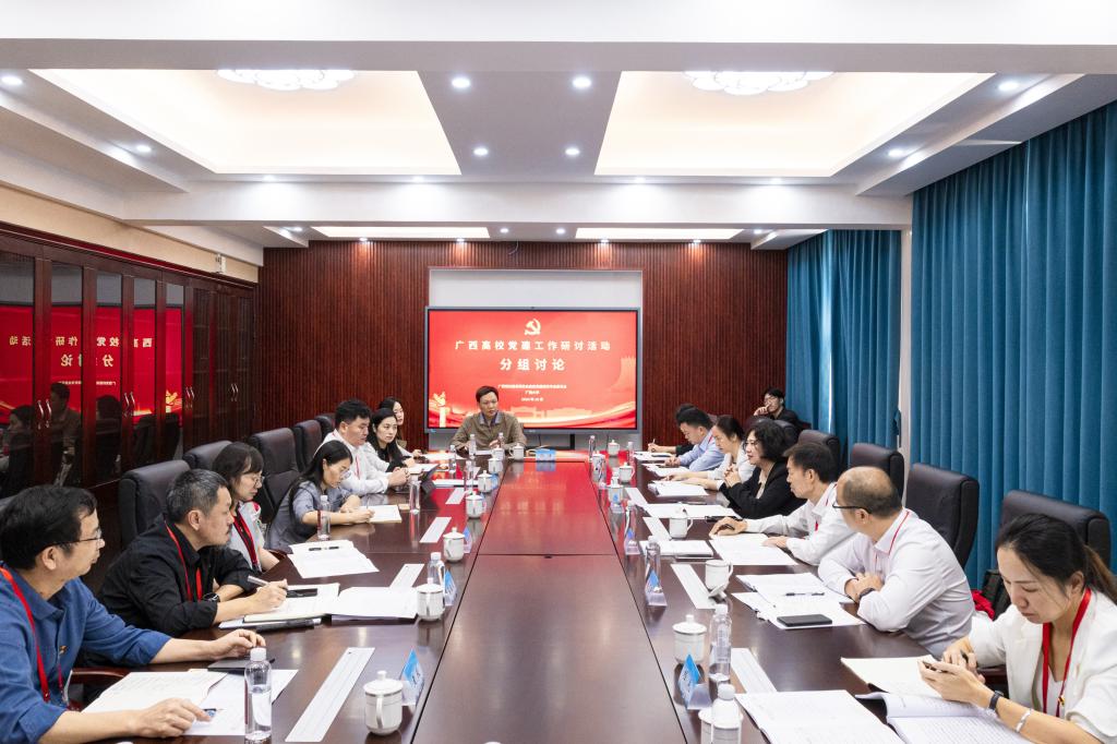 在分組研討環節中,參會成員分別圍繞黨建聯建、教育服務、科技賦能、實踐育人等四個“強國行”專項行動重點任務,以及研究生黨建工作進行充分研討。在集中交流環節中,來自廣西大學、廣西醫科大學、廣西師范大學、廣西中醫藥大學、廣西交通職業技術學院、廣西水利電力職業技術學院、廣西工業職業技術學院等9名高校黨委組織部負責人代表和“雙帶頭人”教師黨支部書記代表結合各自經驗做法,圍繞主題做重點發言,營造同題共答、同頻共振的會場氛圍。