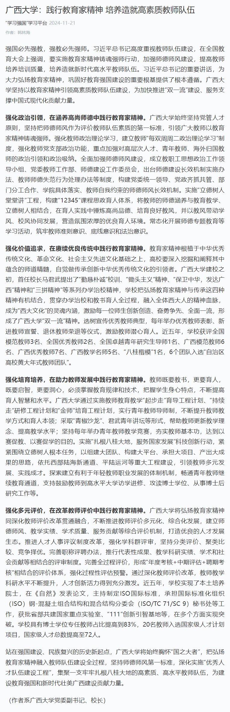 廣西大學:踐行教育家精神 培養(yǎng)造就高素質(zhì)教師隊伍