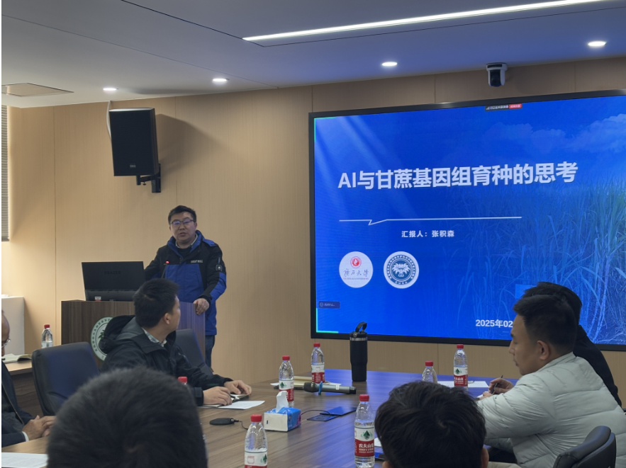 張積森教授作《AI與甘蔗基因組育種的思考》的報告。