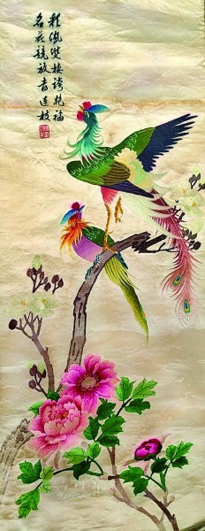 綜合來看,該繡品大約在20世紀二三十年代問世。“湘繡”作為中國四大名繡之一,在這個時期正處于鼎盛期。1935年,《西湖博覽會總報告書》“繡品”一節(jié)中,湘繡就占了一半的篇幅。湖南并非沿海地區(qū),卻在繡品中表現(xiàn)了海外珍禽名花,既可見中西交流的繁盛,更說明中華優(yōu)秀傳統(tǒng)文化的開放包容和日新又新。