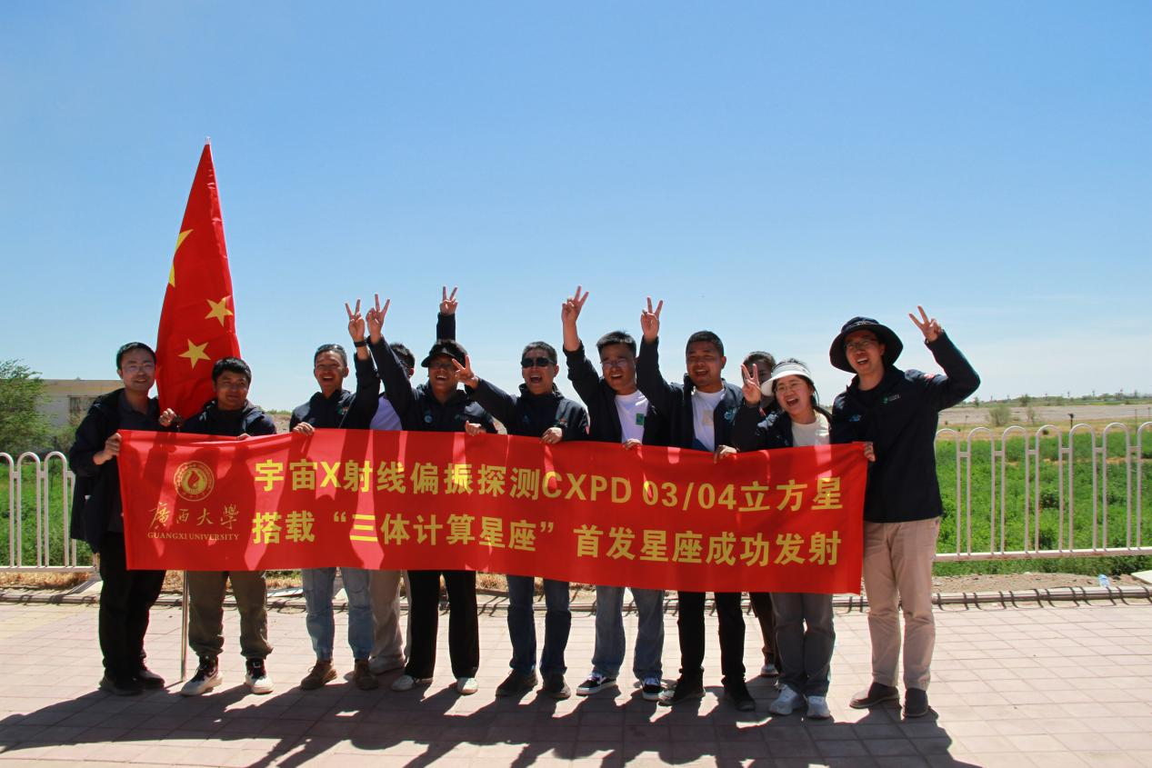 CXPD03/04發射成功后,廣西大學空間粒子探測實驗室與之江實驗室成員在酒泉衛星發射中心現場合影 圖片由校方提供