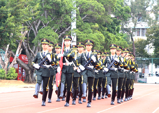 八時(shí)整,升旗儀式正式開(kāi)始。伴隨雄壯的《義勇軍進(jìn)行曲》和西大國(guó)旗儀仗隊(duì)鏗鏘的腳步聲,師生齊唱國(guó)歌,深情注目,鮮艷的五星紅旗與太陽(yáng)一同升起,高高飄揚(yáng)。
