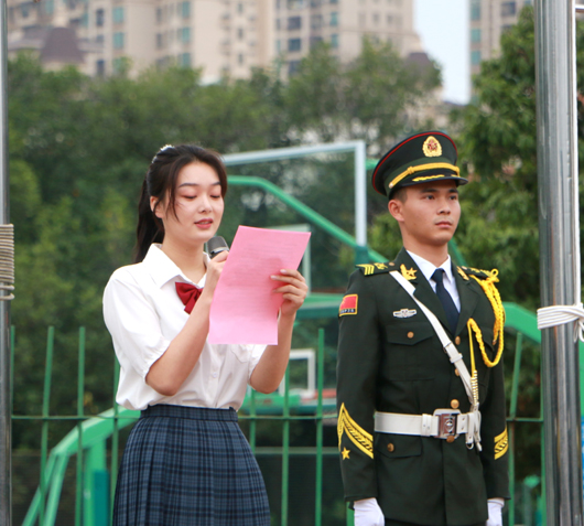隨后,學(xué)生代表張海燕在國(guó)旗下作題為《國(guó)旗之下,家國(guó)所在》的演講。她回顧了新中國(guó)成立71年來(lái)走過(guò)的波瀾壯闊的奮進(jìn)征程,講述了偉大的中國(guó)人民與祖國(guó)同命運(yùn),用生命和汗水為五星紅旗增添光彩的感人故事,抒發(fā)了自己的愛(ài)國(guó)之情,并倡導(dǎo)全體師生效先輩之風(fēng),懷愛(ài)國(guó)之心,自強(qiáng)不息,求索不止,為實(shí)現(xiàn)中華民族偉大復(fù)興的中國(guó)夢(mèng)努力奮斗。