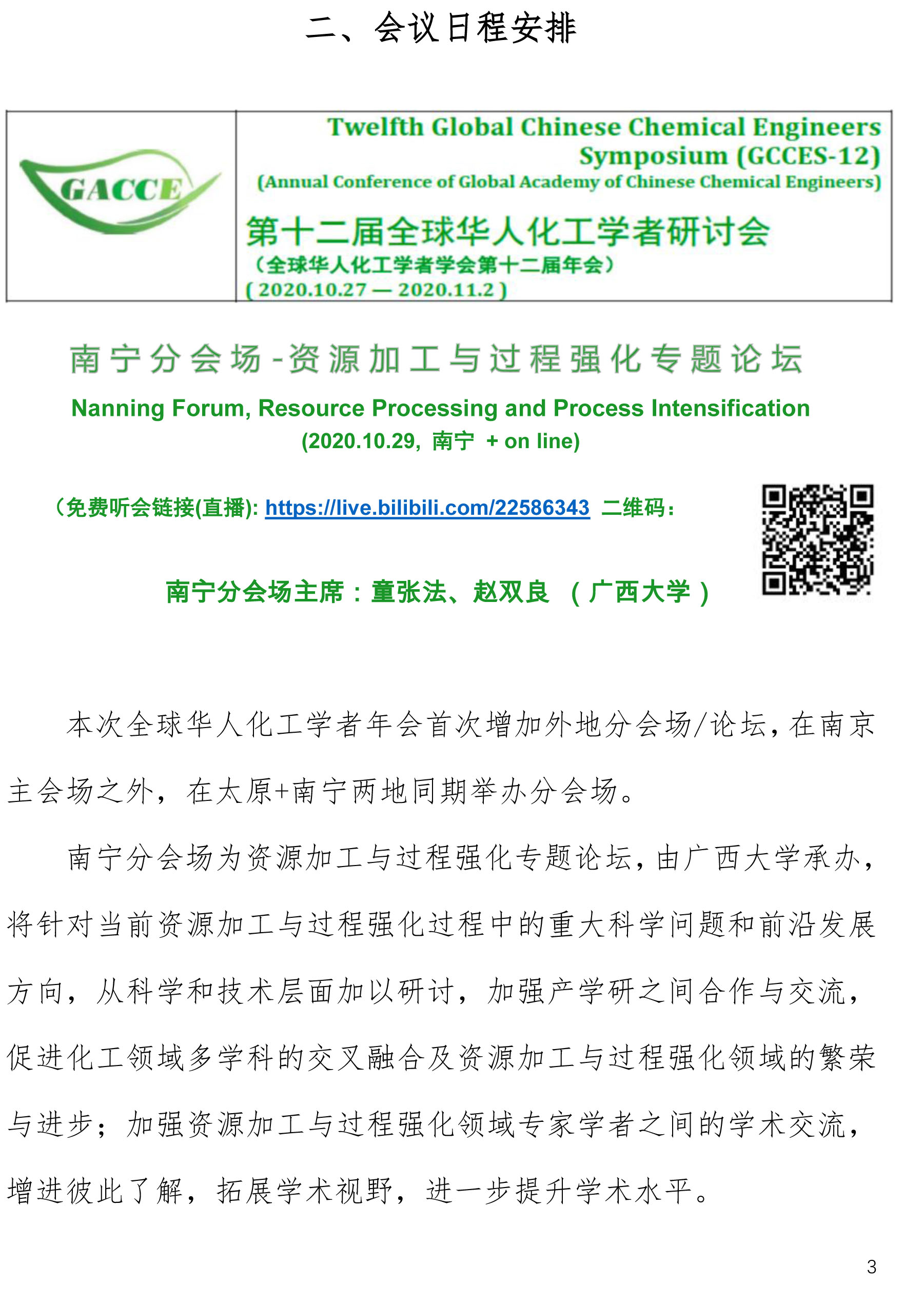 第十二屆全球華人化工學者研討會:南寧分會場-資源加工與過程強化專題論壇