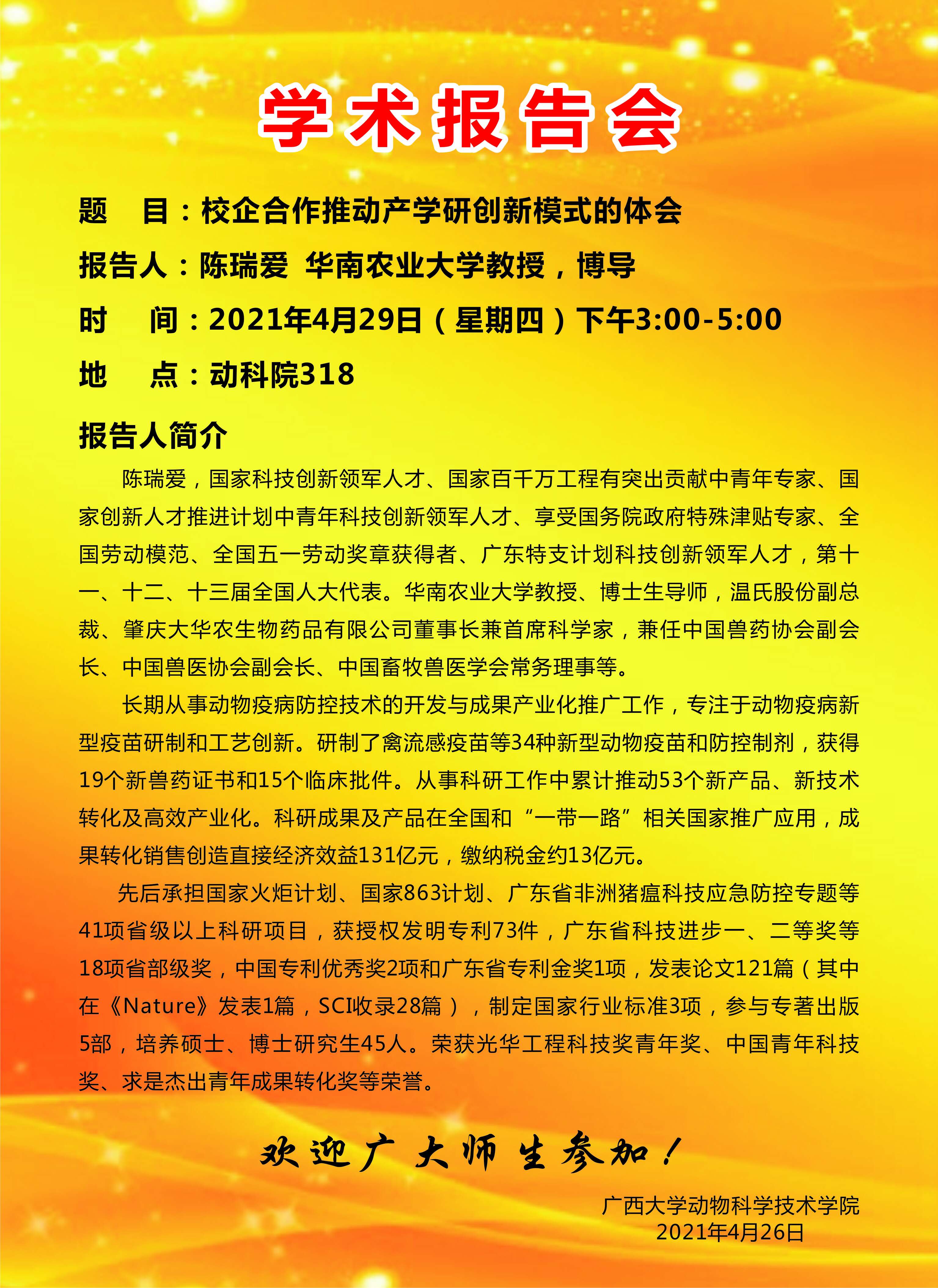 動物科學技術學院學術報告:校企合作推動產學研創新模式的體會