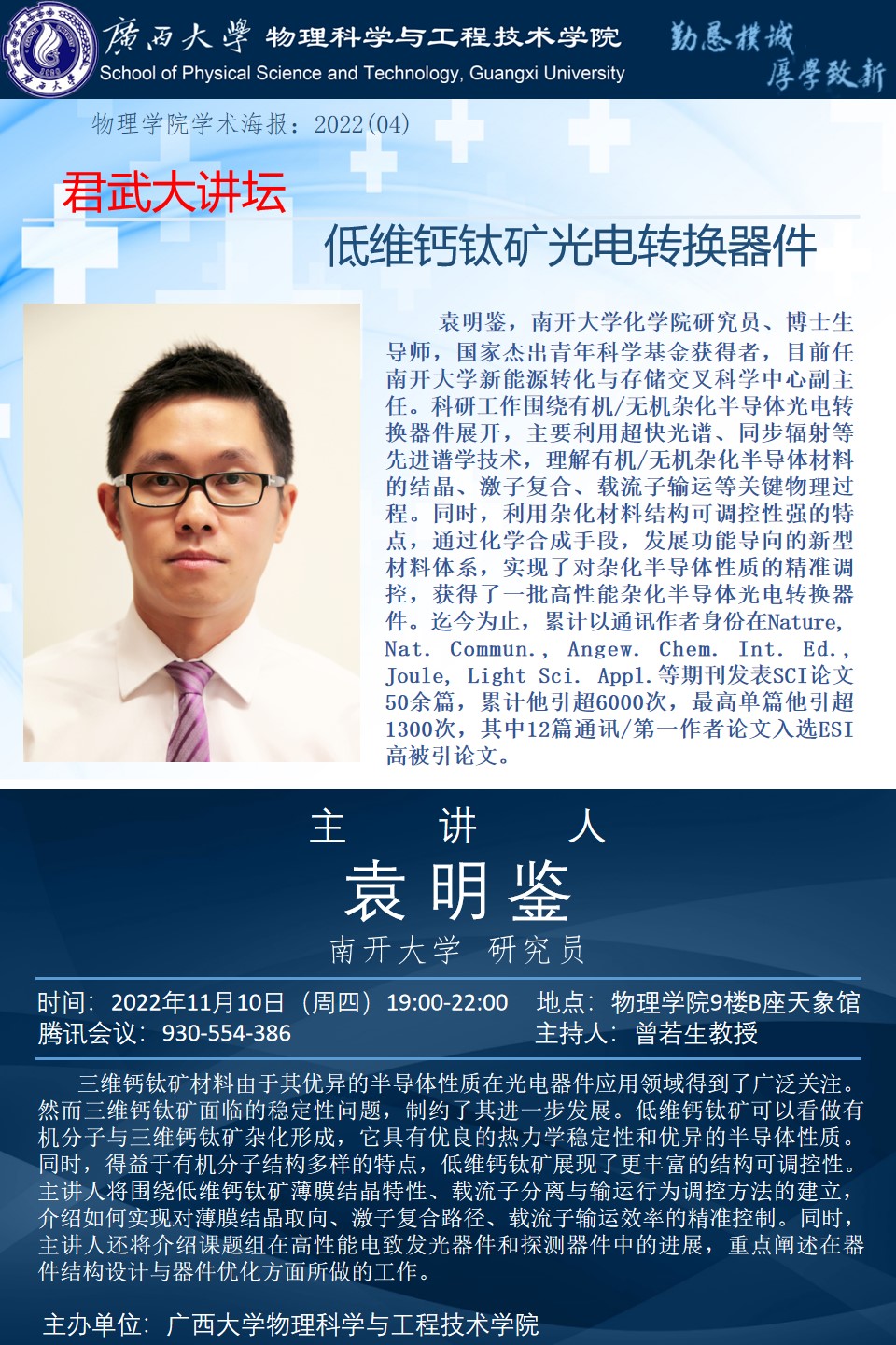 下一條:君武大講壇醫(yī)學(xué)院學(xué)術(shù)報(bào)告:腫瘤免疫小分子藥物研究