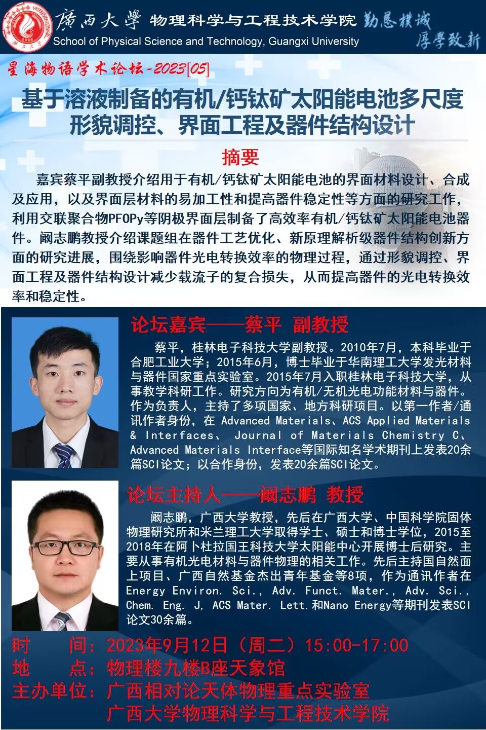 上一條:廣西大學(xué)君武大講壇、資源環(huán)境與材料學(xué)院學(xué)術(shù)報(bào)告:鈣鈦礦光電材料設(shè)計(jì)與物性調(diào)控進(jìn)展