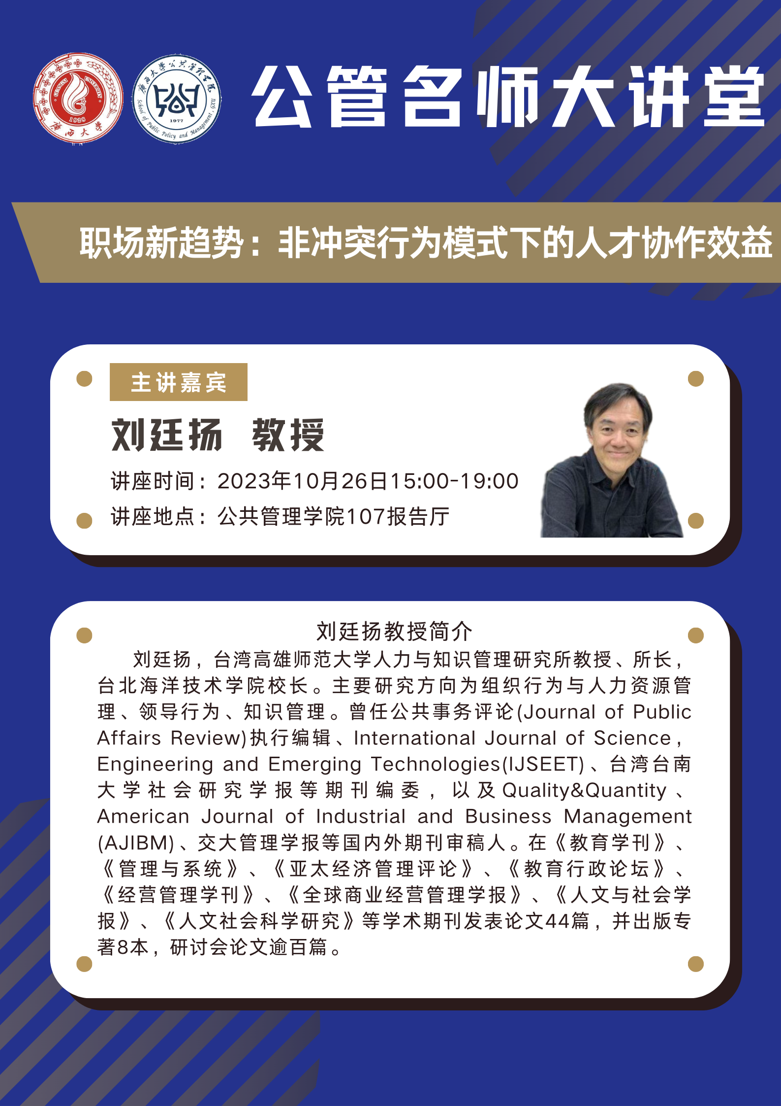 公共管理學院名師大講堂:職場新趨勢----非沖突行為模式下的人才協作效益