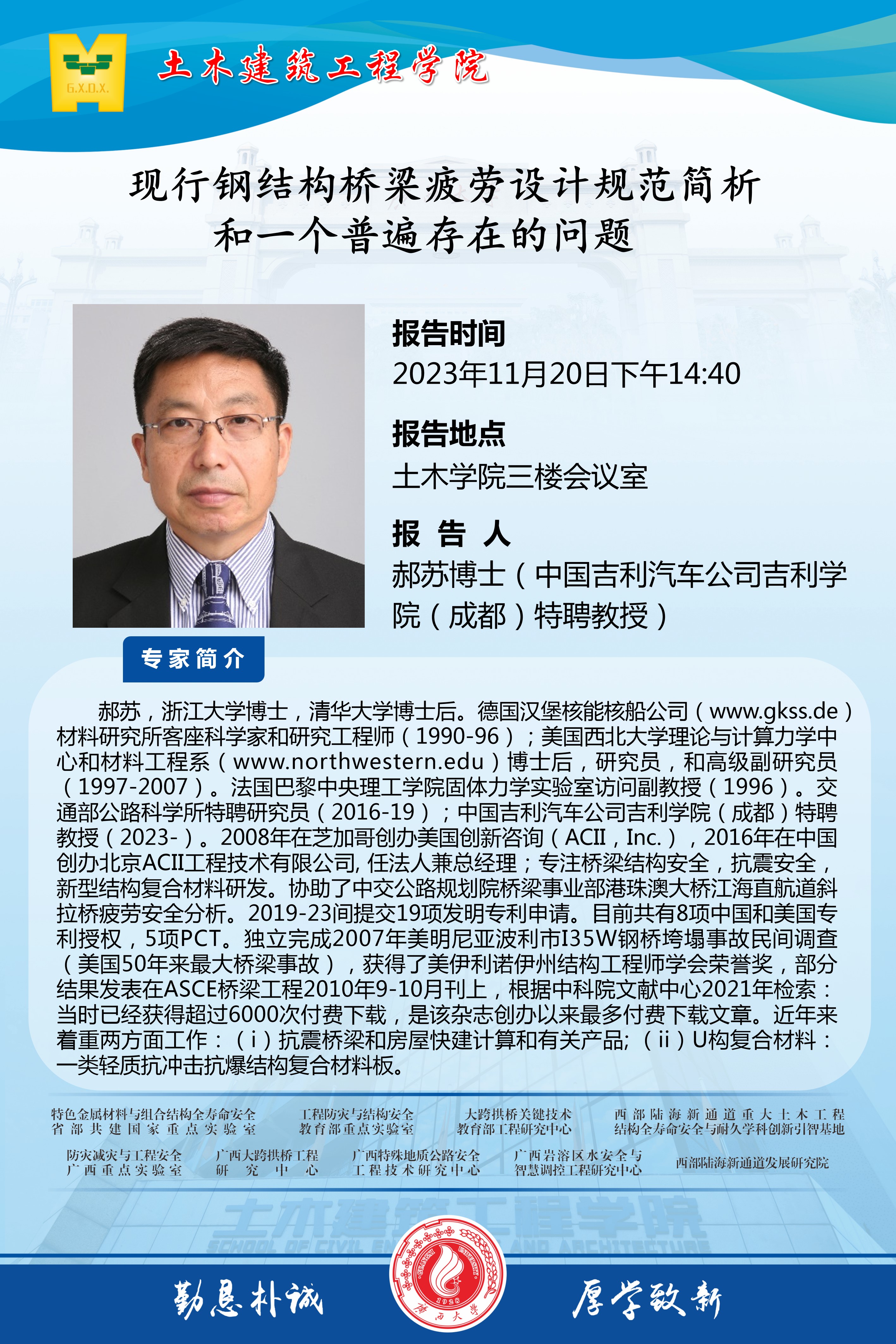 土木建筑工程學院學術報告:現行鋼結構橋梁疲勞設計規范簡析和一個普遍存在的問題