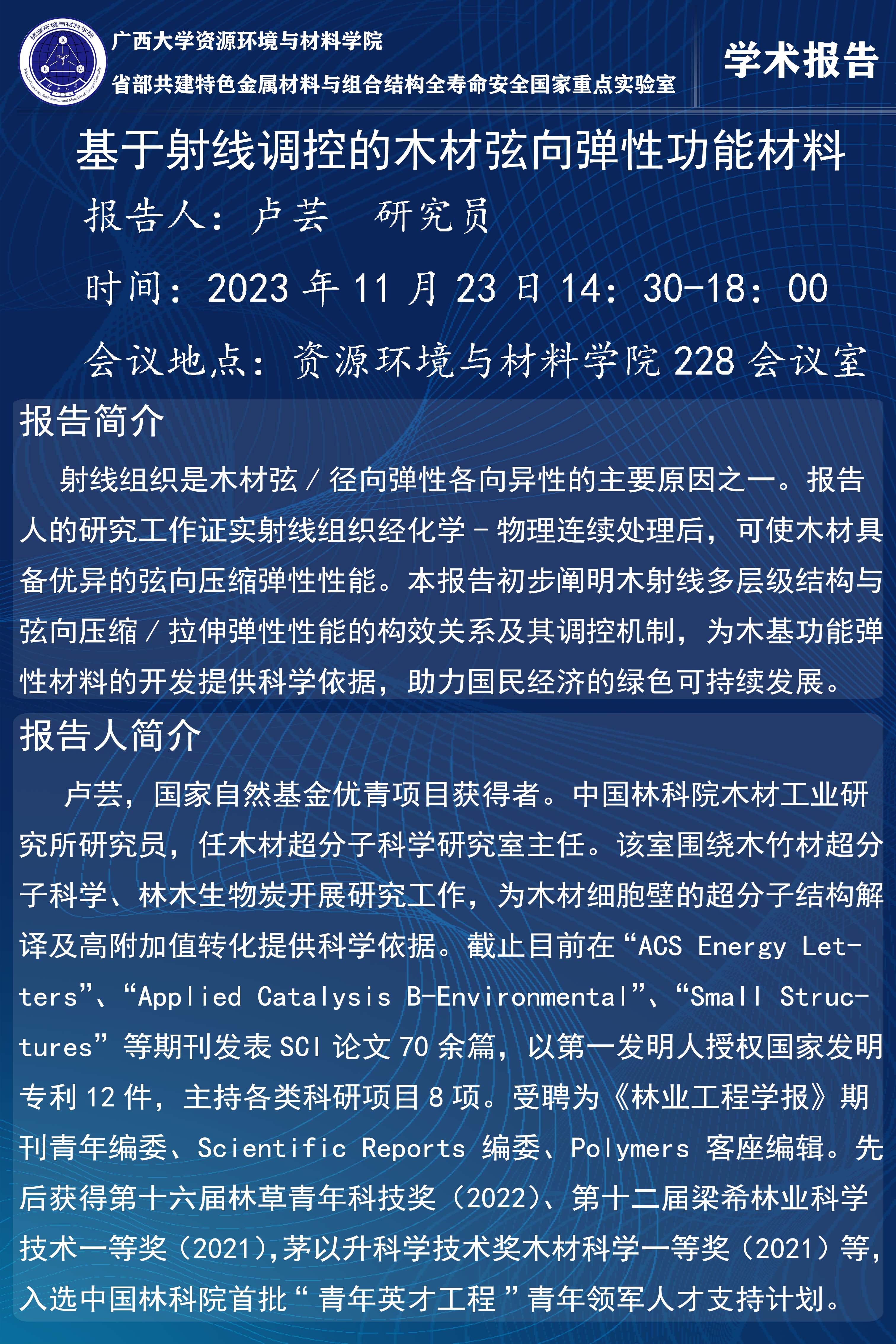 資源環境與材料學院學術報告:基于射線調控的木材弦向彈性功能材料