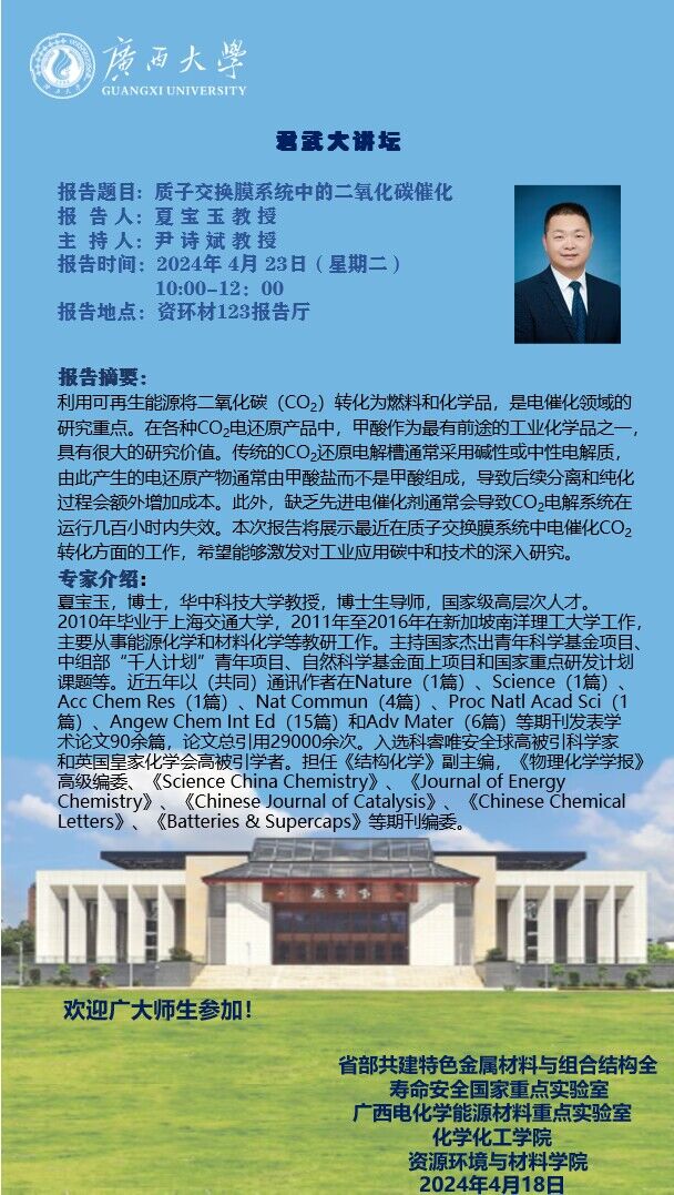 化學化工學院君武大講壇:質子交換膜系統中的二氧化碳催化