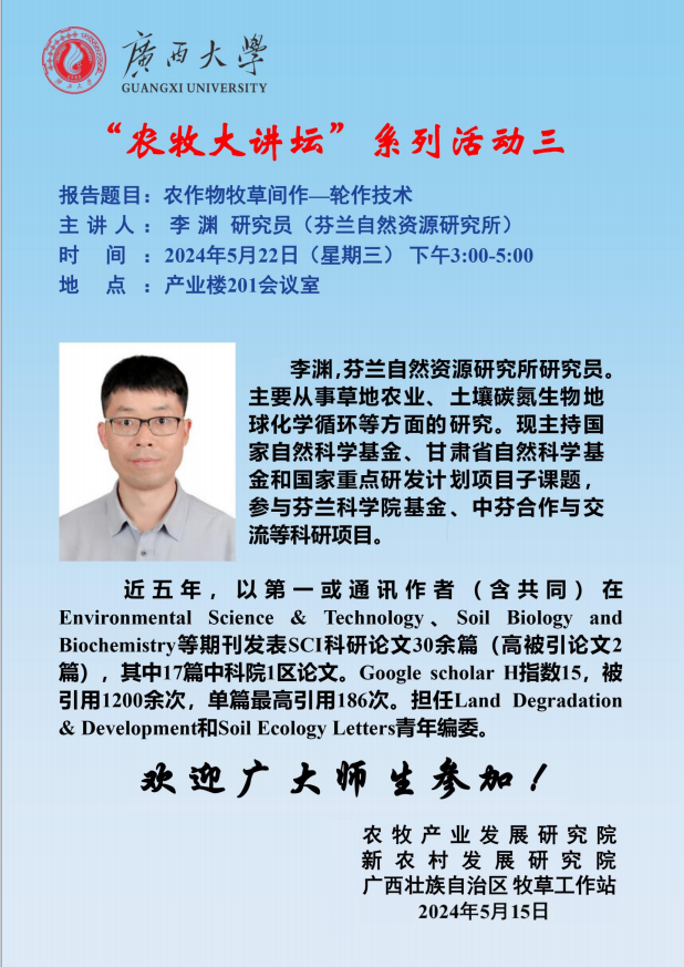 主講人 李淵 研究員(芬蘭自然資源研究所) 地址 產業樓201會議室