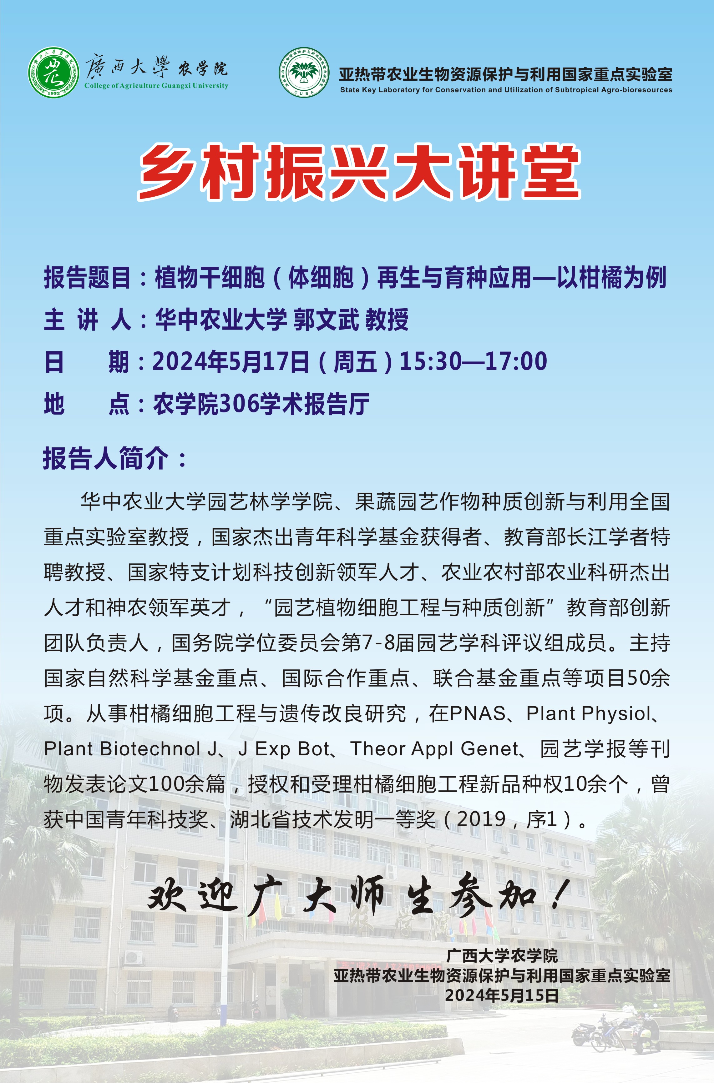 主講人 華中農業大學 郭文武 教授 地址 農學院306學術報告廳