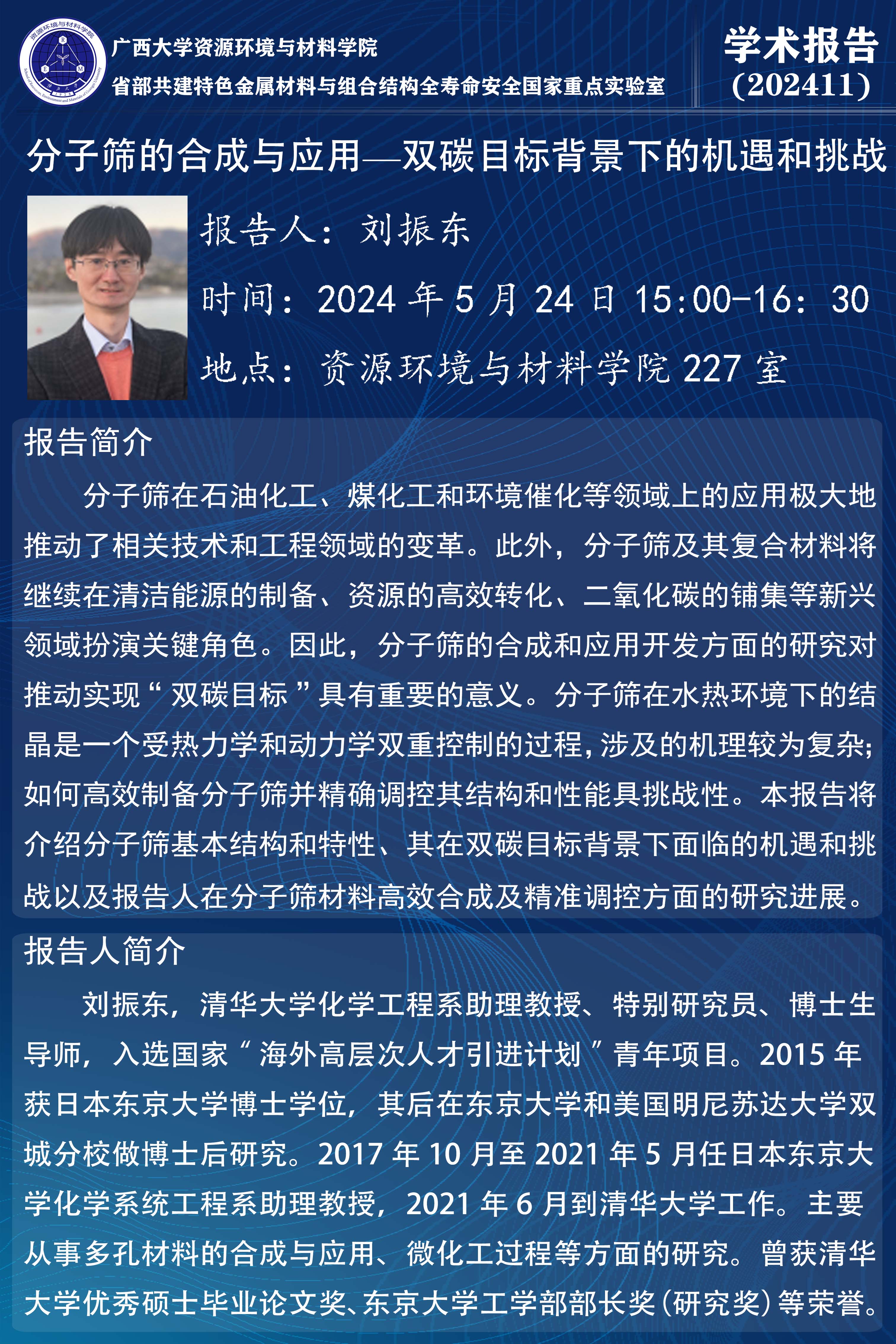 資源環境與材料學院學術報告:分子篩的合成與應用一雙碳目標背景下的機遇和挑戰