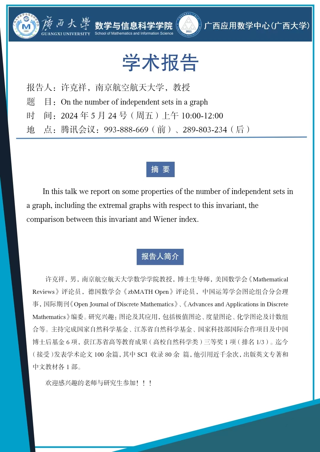 主講人 許克祥 南京航空航天大學教授 地址 騰訊會議:993-888-669(前)、289-803-234(后)