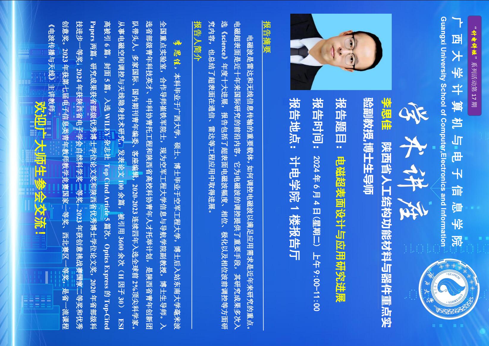 計算機與電子信息學院學術報告:電磁超表面設計與應用研究進展