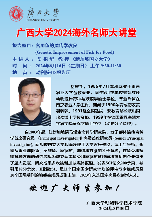 廣西大學2024海外名師大講堂:食用魚的遺傳學改良