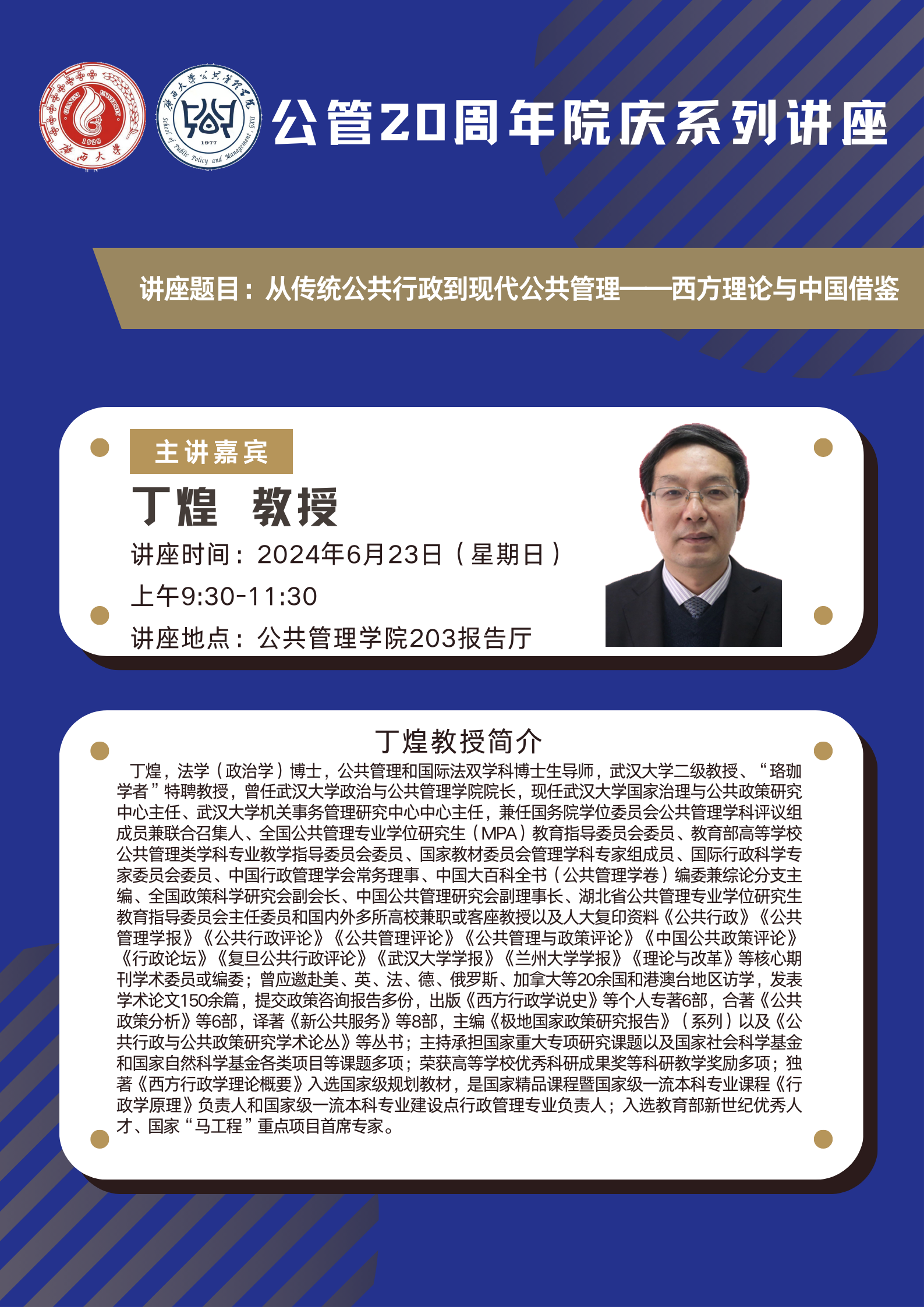 主講人 丁煌教授 地址 公管203報(bào)告廳