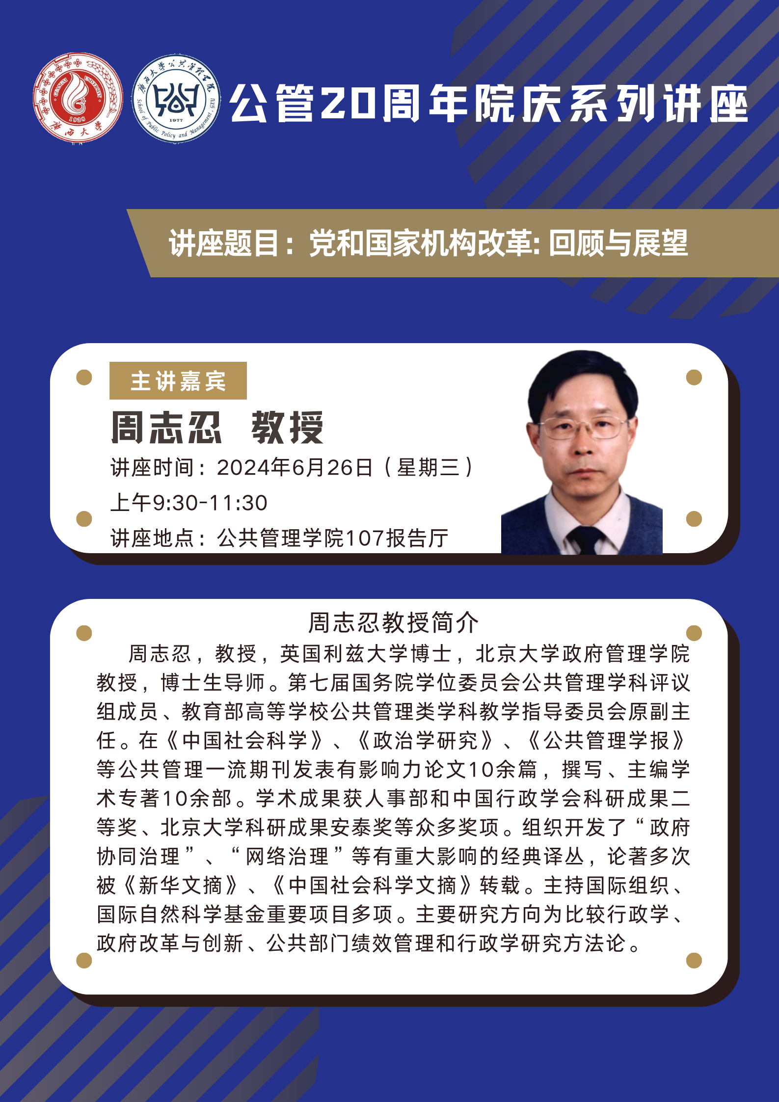 主講人 周志忍教授 地址 公管107報(bào)告廳