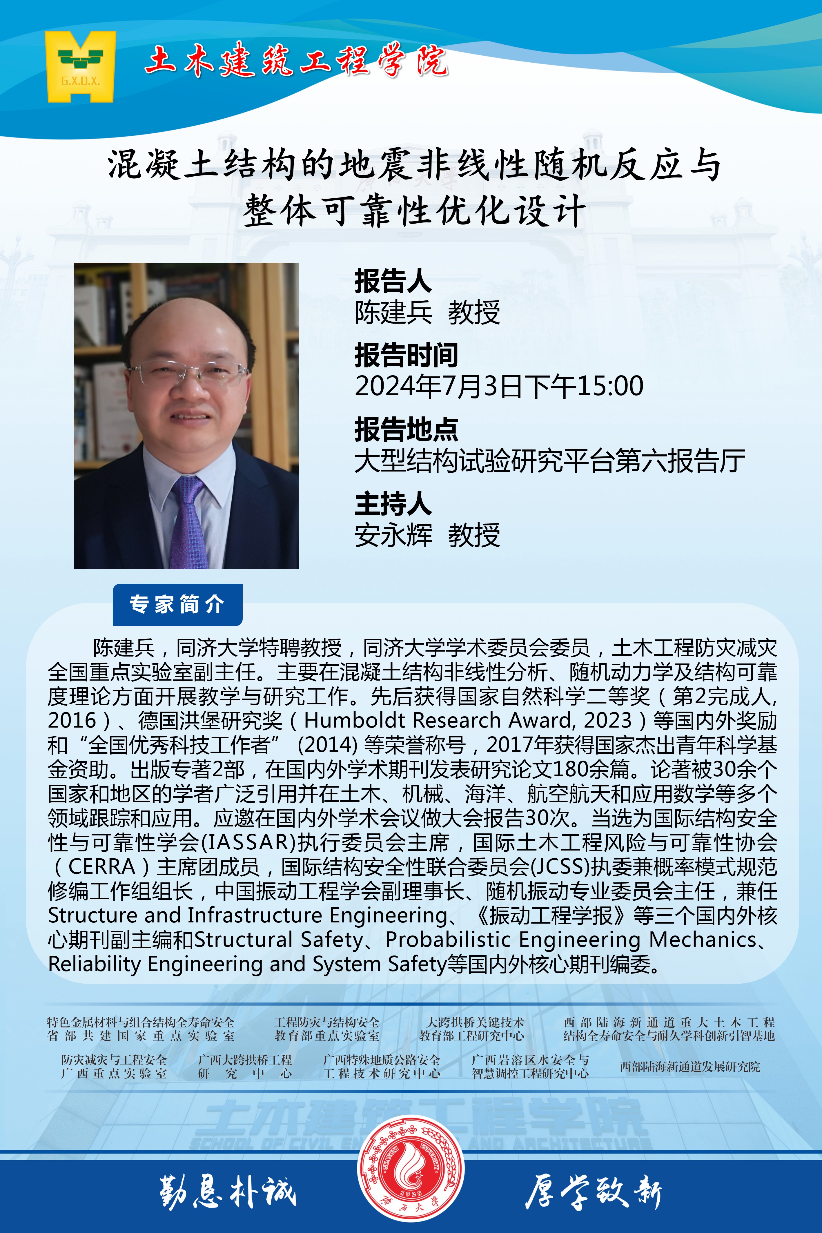 主講人 陳建兵 教授 地址 大型結構試驗研究平臺第六報告廳