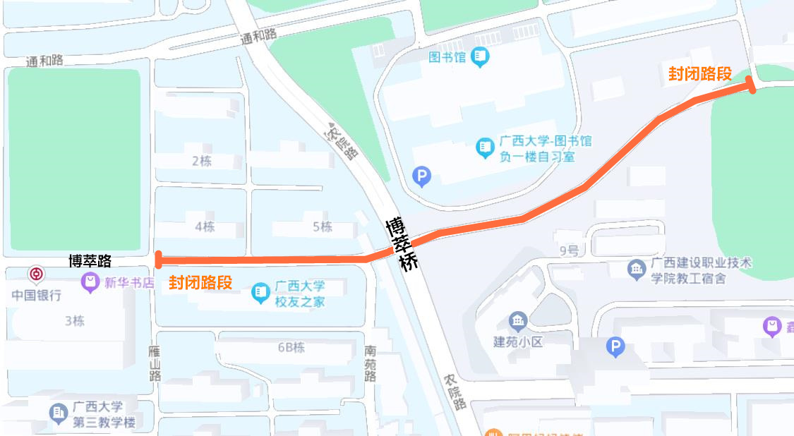 由于博萃橋發生車輛超限高強行通行單方交通事故,對博萃橋的橋面底板造成一定損傷,目前該橋的管養單位正在與肇事方協商處置方案。為保障全校師生員工的安全,計劃于2023118日起對博萃橋附近路段(西起雁山路與博萃路交叉口,東至博萃路與鴣江路交叉口,見下圖)進行臨時封閉,請過往車輛選擇繞行。如有不便,敬請諒解!